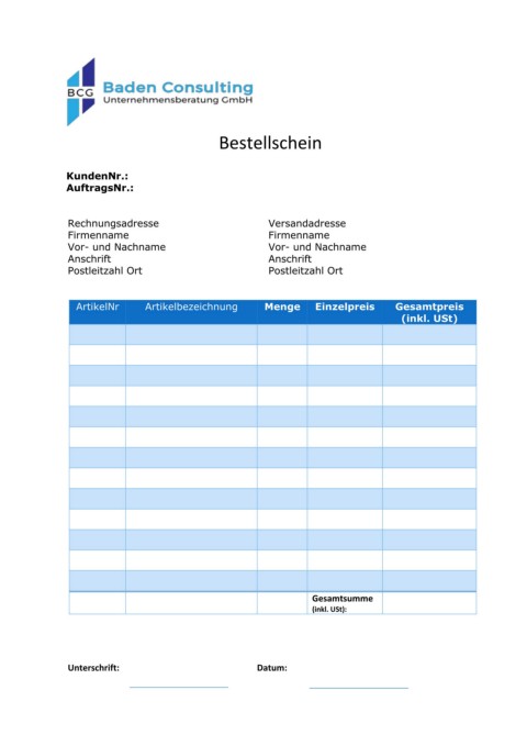 ArtikelNr Artikelbezeichnung Menge Einzelpreis Gesamtpreis