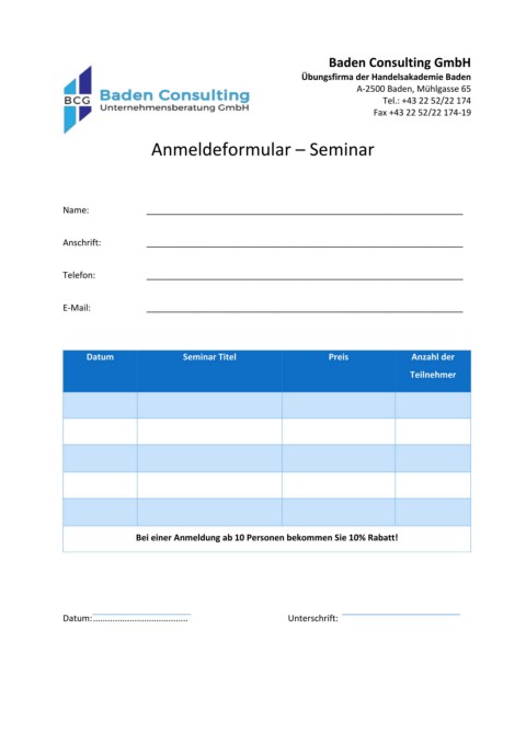Bei einer Anmeldung ab 10 Personen bekommen Sie 10% Rabatt!